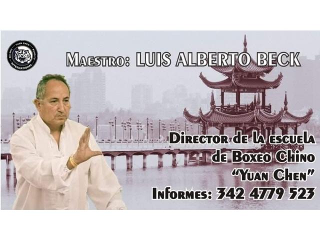 ESCUELA DE BOXEO CHINO "YUAN CHEN" Taichi Chuan. Martes y Jueves 18.30hs: Club Mayoraz WUSHU KUNG FU Pedir otros turnos. 0342-154779523. Maestro Luis Alberto Beck.